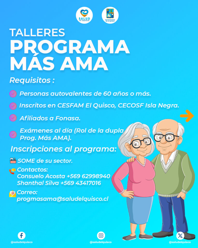 La última semana de febrero está planificado el inicio de un nuevo ciclo de talleres del Programa MÁS AMA para este 2026: Los talleres consisten en intervenciones de actividad física y prevención de caídas (24 sesiones) y estimulación cognitiva (12 sesiones) guiados por Kinesióloga y Terapeuta Ocupacional. Además de 12 talleres de autocuidado con distintos […]